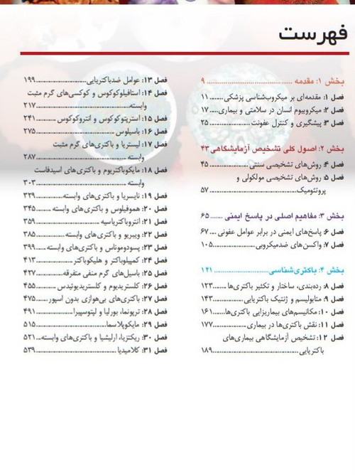 این اثر ترجمه قسمت باکتری شناسی(عمومی و اختصاصی) ویراست دهم"Medical Microbiology" است. در چاپ 2026 این کتاب در بخش های مختلف مطالب جدیدی در خصوص طبقه بندی باکتری ها، فاکتور های بیماری زایی، روش های تشخیص و رژیم درمانی اضافه گردیده است. در این چاپ با شیوه ای متفاوت از چاپ های قبل، نویسنده به منظور درک بهتر خوانندگان از باکتری ها و بیماری های عفونی ناشی از آن ها، به معرفی موارد بالینی و طرح پرسش و پاسخ در ابتدا و انتهای فصل های کتاب پرداخته است. این کتاب از سوی وزارت بهداشت، درمان و آموزش پزشکی به عنوان مرجعی جهت تدریس در دانشگاه ها برای گروه های مختلف پزشکی، علوم پایه پزشکی و نیز آزمون های رشته های گوناگون در مقاطع مختلف تحصیلی شامل دکتری تخصصی(Ph.D)، کارشناسی ارشد، کارشناسی و ارتقا که درس میکروب شناسی پزشکی از دروس امتحانی آن ها می باشد، معرفی شده است.